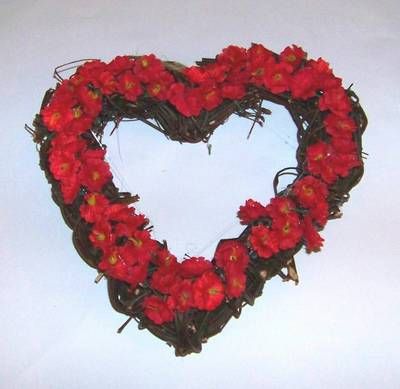 Aranjament in forma de inima cu flori rosii