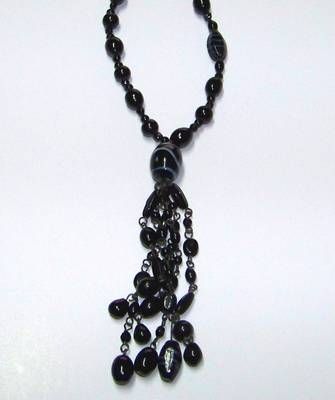 Colier Dzi negru, din onix, cu simboluri de protectie