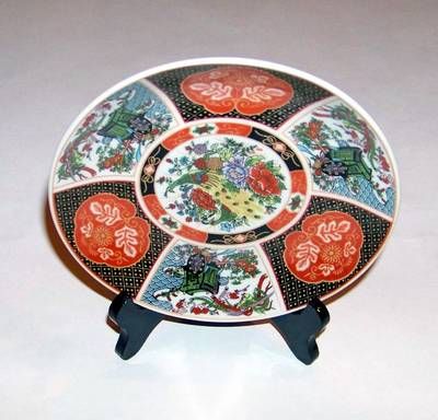 Farfurie din portelan cu paun, dragoni si bujori
