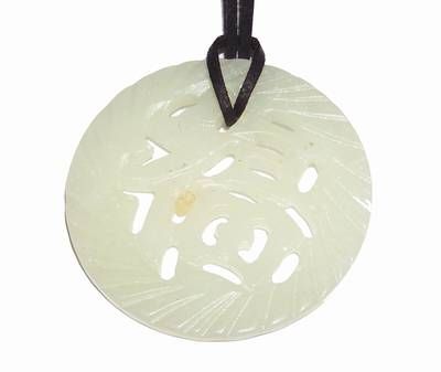 Pandantiv din jad cu ideograma norocului pe siret negru