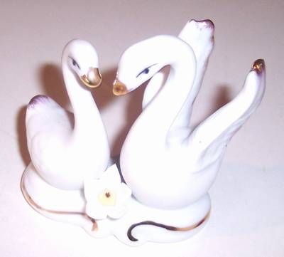 Pereche de lebede din ceramica pictata - remediu Feng Shui