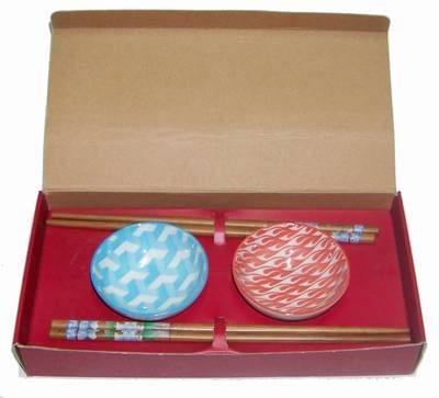 Set compus din 2 farfuriute si doua perechi de betisoare