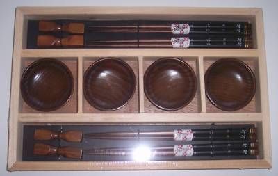 Set de patru perechi de betisoare din lemn cu suport