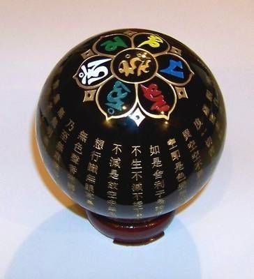 Sfera neagra din obsidian cu 7 chakre si mantre de protectie