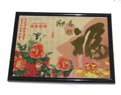 Tablou Feng shui cu bujori, pepite si ideograma norocului