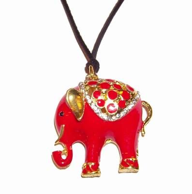 Talisman placat cu elefantul protectiei rosu, pe siret negru