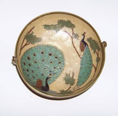 Vas din alama cu maner si pereche de pauni